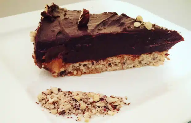 Слага се в хладилника, докато се сгъсти и се разбърква от време на време. Поставя се блата, върху него крушите и върху тях шоколадовият крем. Оставя се да стегне и се маха ринга. Слагат се лешници за украса.