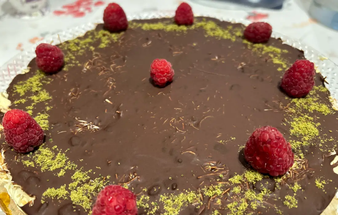Разбъркваме с миксер сметаната, пастата от шам фъстък и крем сиренето до получаването на хомогенна смес. Прибавяме кадаифа и получения пълнеж разпределяме равномерно върху бисквитената основа. Отново оставяме да стегне. Разтапяме шоколада с кокосовото масло и заливаме сладкиша. Охлаждаме, докато стегне. Готови сме да се насладим на една невероятната торта.