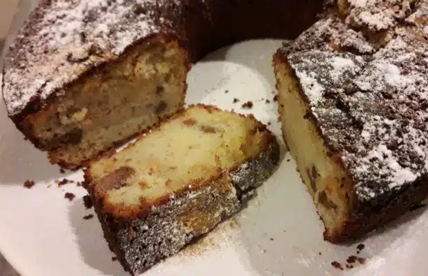 Изсипва се във форма за кекс, като се отделя около 100 мл от сместа и към нея се добавя какаото. Готовата какаова смес се излиза на тънка струя върху останалата смес, за да се получи кафява шарка.