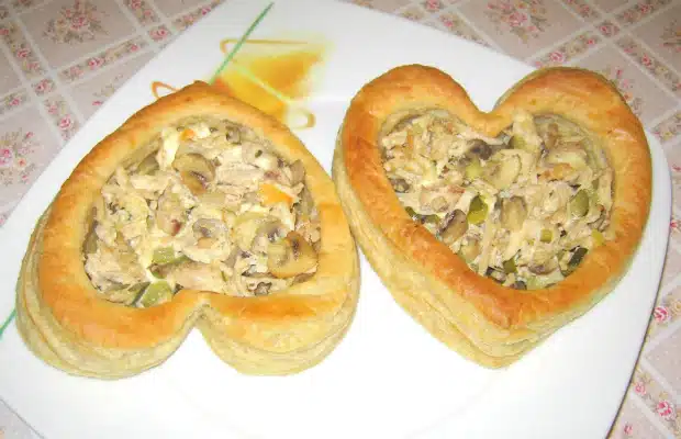 Тестото трябва да е размразено, меко, охладено. Разстила се и се реже с метален пръстен (в случая е във форма на сърце) или с гърлото на чаша. От чаша или пръстен с по-малък диаметър се изрязват за волованите втория ред с отвор.