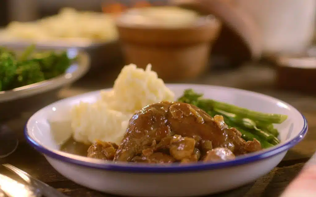 Сервирайте яхнията от фазан с картофено пюре и сварени на пара броколини.