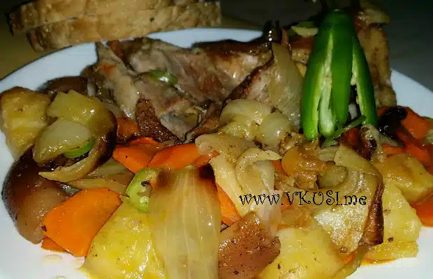В рецептата, която ще ви предложа днес съм използвала най-вкусното от свинското месо за мен – свински джолан. Месото на джолана (при правилна кулинарна обработка) е изключително крехко, което може да се топи в устата, но в същото време е и много мазно, заради което не е от най-предпочитаните, но уверявам ви – заслужава си. Опитайте с чаша руйно вино. 🙂