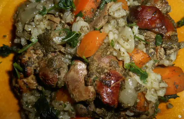 Запечени дробчета с ориз и зеленчуци