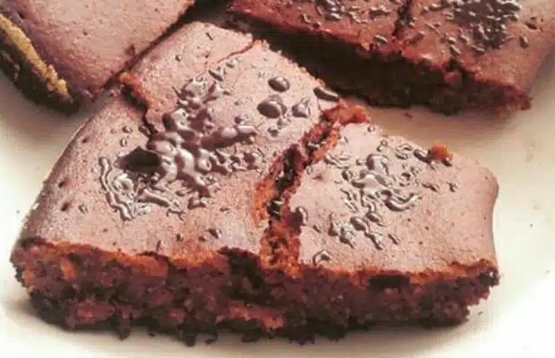 Пече се на 200 градуса около 20 мин. През това време шоколадът се разтапя на водна баня и с него се полива кексът.