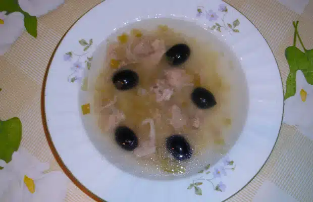 Зимна супа от свинско месо с маслини