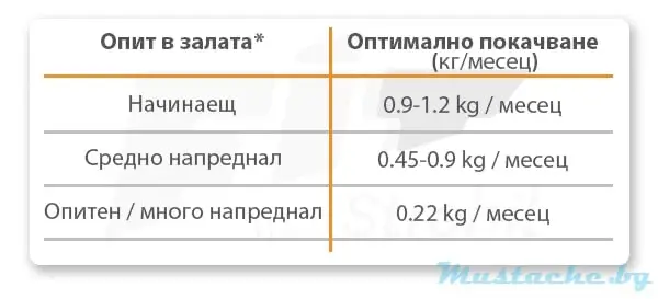 *Начинаещ – тренираш отскоро и нямаш предишен опит в покачването на маса и тренировките.