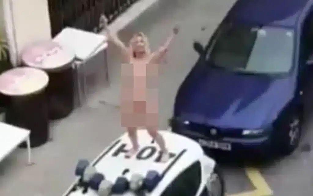Испанка се съблече гола и се качи върху полицейска кола в протест срещу ограниченията заради коронавируса, съобщи в. „Daily Mail“.