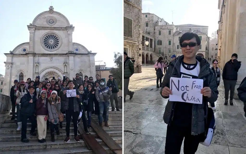Туристи от Тайван са били забелязани да се разхождат в центъра на хърватския град Шибеник, носейки надписи „Не сме от Китай“, написани на английски език.
